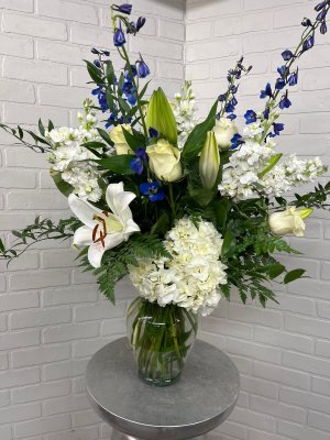 Sorry but I was expecting more. Drove down to your store with a picture off your web site of what I was expecting and I feel like I got something less. She actually thought the flowers on top of the bouquet were already dead. I actually used your store back in the 1980's and 90's and thought you went above and beyond which is why I made a special trip to come in person. This time I was really disappointed.