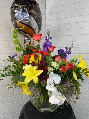 Appreciate the photo which mirrored the one the recipient sent. She was pleased with the flowers and the balloon was as advertised. I find Boswell pricey but they deliver on time and provide good service. Also have a good website. I have used them before and will do so again.