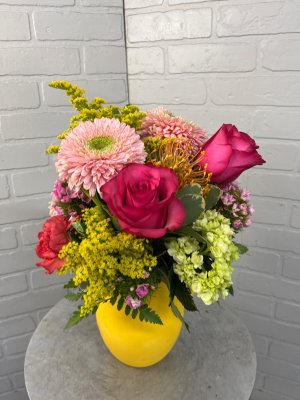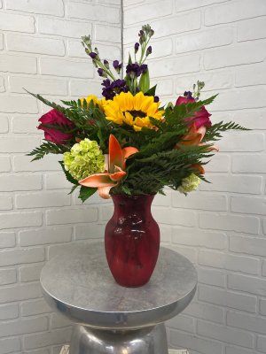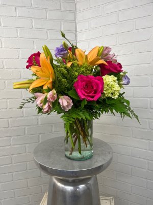 I was disappointed in this arrangement. I'll be brief. So much greenery = not enough flowers Tallest item should be flower, not greenery. Vase seems too small for arrangement. Arrangement too crowded, doesn't show-off flowers well. The young lady who took my order was exceptionally helpful and pleasant. She's a keeper. I have been using GB exclusively for the 22 years since I moved from Texas to Mississippi. This is the first time this has happened so I will continue to use GB. Finally, my mom loved the flowers. Go figure. Maybe sending photos isn't a good idea. 🥴 I'm not angry, just disappointed. I hope this won't reflect on future arrangements I order from GB.