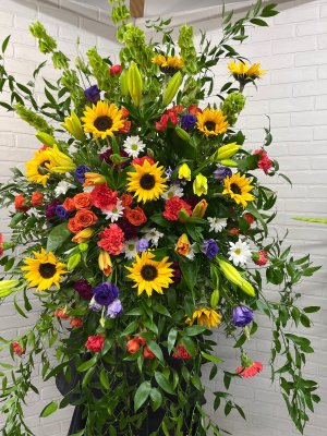 The arrangement was lovely and captured exactly what I was looking for to honor a special loved one. They were delivered timely as planned. I wish I could have seen the lillies open up before the service, but otherwise the arrangement was beautiful๐