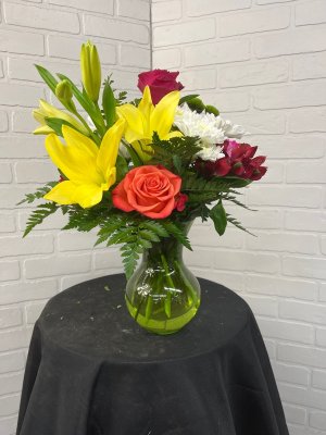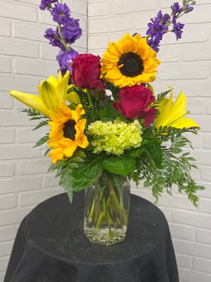 The person who took my order was very nice and helpful. The flowers were beautiful. They were delivered on time. The picture was very helpful. Thank you. I just think for over $100.00 there should have been more.
