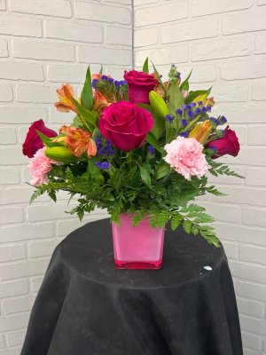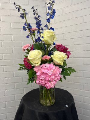 Appreciate the photo which mirrored the one the recipient sent. She was pleased with the flowers and the balloon was as advertised. I find Boswell pricey but they deliver on time and provide good service. Also have a good website. I have used them before and will do so again.