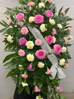 Little week on the purple stems, must have ran out. Could have added more greenery to fill in ….. but thank you for getting it to the church. Kathy