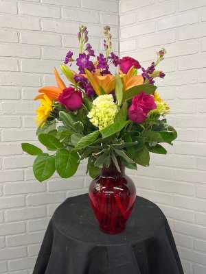 Loved the arrangement. I ordered flowers for my wife for our anniversary. The arrangement was beautiful and delivered promptly. Thank you for a great experience!