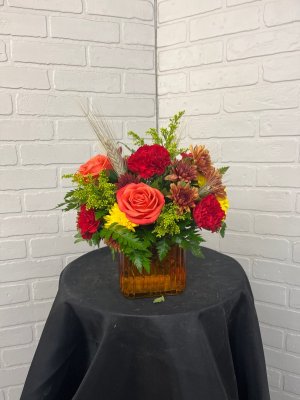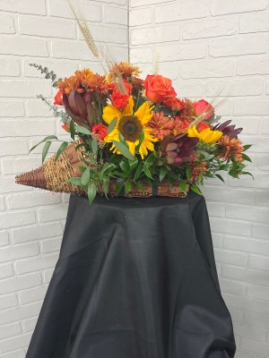 It's perfect!! Love the Turkey container and the colorful selection of flowers.. it speaks of Thanksgiving!