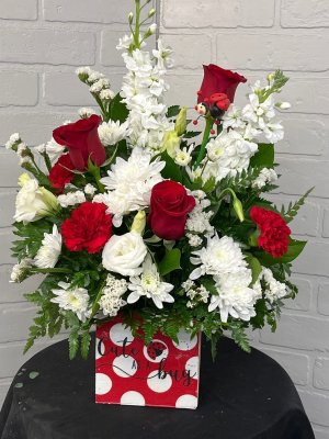 The flower arrangement is absolutely beautiful! I love your website, your style, your personal touch, and the customer service that's been provided is five star! Thank you!