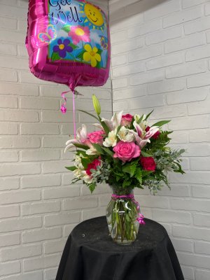 Its just beautiful ! The balloon is a great addition. Thanks for sending me a photo. Never had a florist do that before. I'll certainly recomend your shop !