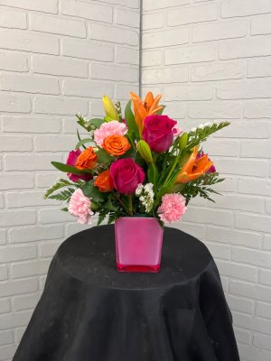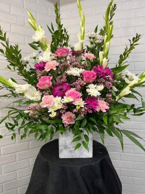 Beautiful Arrangement,Fresh flowers Great service and speedy delivery ,they made me look like a hero.