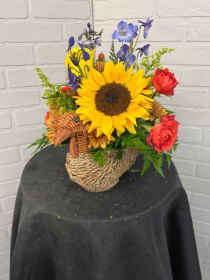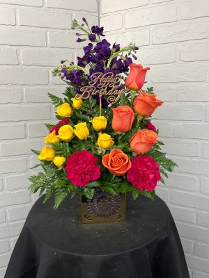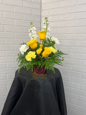 The arrangement is beautiful and cheerful and the colors are love