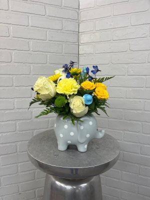 Too large! I called to change it to Hello Sweet Baby elephant FOR GET WELL AND NOT NEW BABY