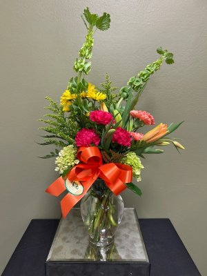 Such a beautiful arrangement. From the time of my call to order flowers to delivery, this experience was perfect. I appreciate seeing the flowers you delivered. Customer service was excellent. It was only a matter of hours from ordering to delivery. Our niece is thrilled with her flowers. Thank you. I will definitely use your service again.