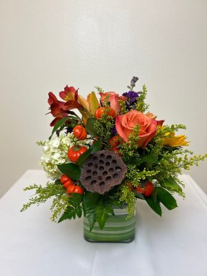 "Flowers are beautiful. Lovely variety of fall blooms. My mother appreciated ver much. Really like the send a photo feature of the process."