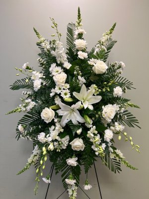 The flowers were beautiful. They arrived on time as promised. I could relax after I saw the photo of the spray. Service was friendly and helpful.