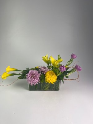 This was a centerpiece Easter arrangement for an oblong=shaped dining table. My wife and her sister commented "How exquisite, How perfect". My rather vague guidance on what I wanted was turned into a terrific contribution to our Easter dinner table. I would like to know the name of the designer--I would like to have it for reference for my future orders. Thank you, and well done to the designer. Alan Graham