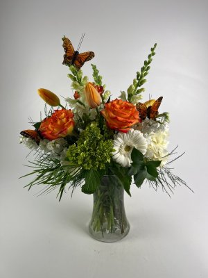 You did a phenomenal job at putting together all of my requests into a beautiful arrangement for an important occasion. I greatly appreciate the fact that you were able to add the butterflies into the arrangement. Thanks to all of your designers!!