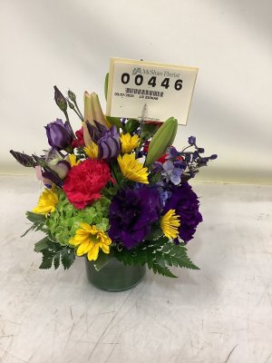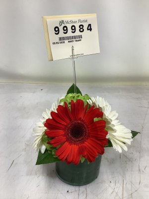The flowers were beautiful and just as ordered. They were delivered on time. The person taking my order over the phone was very kind, patient, and thorough. It gave me peace of mind to receive a photo of the arrangement the morning of delivery and notification once it was delivered. I would definitely order from McShan's again.