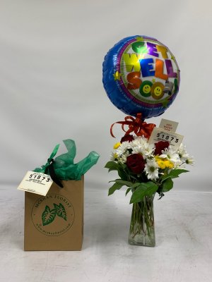 I love getting the photo. Don't love the flowers. I asked for something modern and large. It's boring. Don't think the red roses match either. Not a lot of flowers for $100 either.