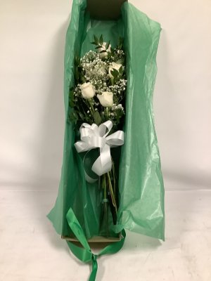 The roses are beautiful but I asked for clear plastic wrap snd I asked for black snd green ribbon to be tied around the flowers already wrapped around the roses and tied. The green and black ribbons were very Important. I have used McShans for many many years and have never been this disappointed.