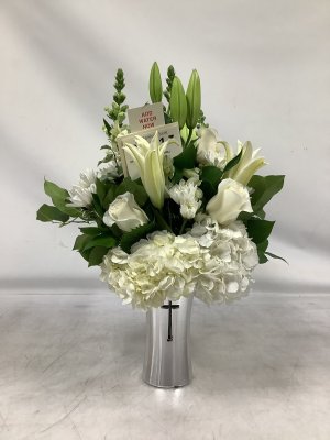 I love this arrangement it's my favorite. The cross makes a great keep sake.