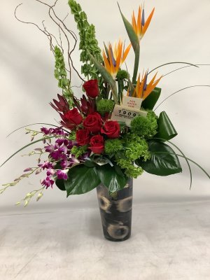 Very nice arrangement and delivery was perfect!! McShan will always be my choice. They've never disappointed me (or my wife)!! Thank you for wonderful products and reliable service.