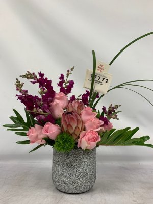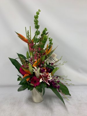 The arrangement is pretty but looks like something you bought at Costco and put it in an old vase! Extremely disappointing for $100.00