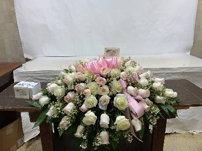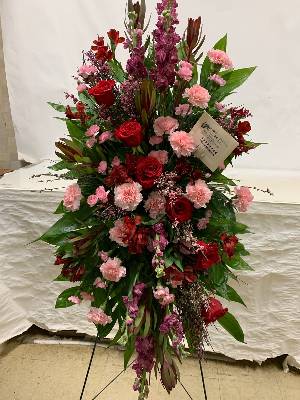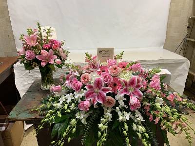 Very beautiful for our funeral service. Only thing missing were a few pink tulips in the vase arrangement.