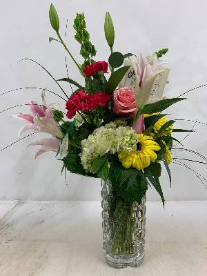 Very pretty! Wish there had been a few white lilies. Thank you for your help. Thank you to Susie for working with me.