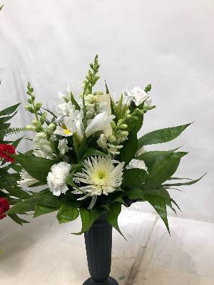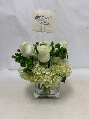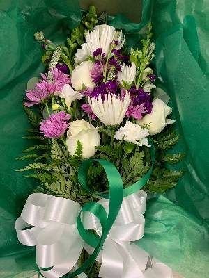Very pretty. Perfect size. One white rose would have been great. The reason I gave it a 4 instead of 5 stars.