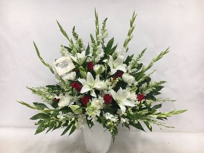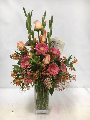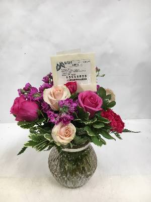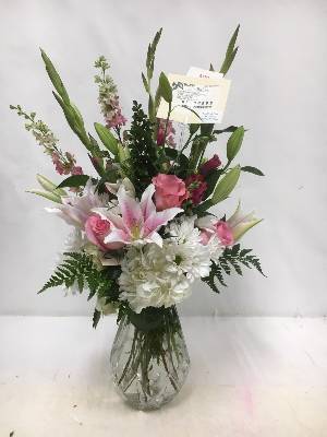 Very pretty arrangement! Would be perfect with a pink bow or some sort of pink accent