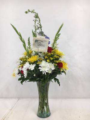 Thank you Richard! This is a quick snapshot taken from a distance so we could get the balloon in the picture to show you the entire presentation of the arrangement.