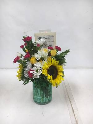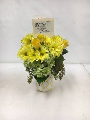 The arrangement was lovely. There were a few small yellow roses that were just a tad bit dry, but the overall arrangement was GREAT!! Thank you