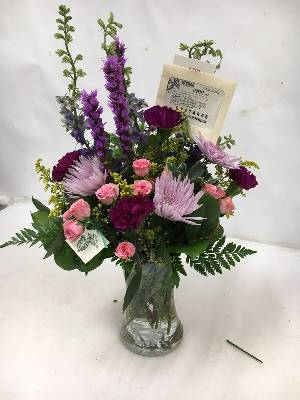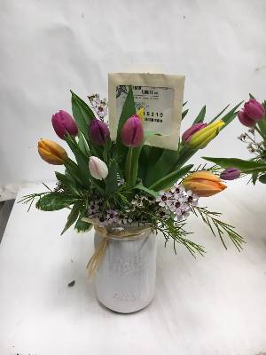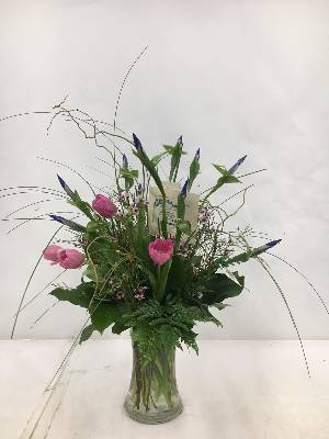 Connie, Thank you so much for speaking with us. We are happy we were able to add lavender tulips to this arrangement! Thank you!