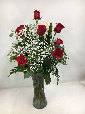 We had ordered one dozen roses. The picture shows only 7 roses and none placed where the white baby's breath are clumped together. When I called they said the rest were on the other side. The arrangement does not look uniformed. Flowers did look fresh.