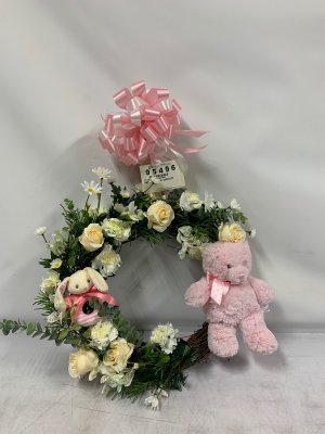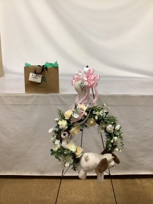 Do you have a stuffed bear or something in lieu of a puppy? Also, can you make the arrangement over the door?