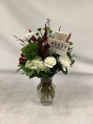 Not particularly...did not expect that white/green in it and not really crazy about a silver bow. Not a $95.00 arrangement in my opinion. I DO like seeing a picture -- and always rave about how y'all always do a great job. Maybe when I see it in person tomorrow, I'll see something different. Thanks....