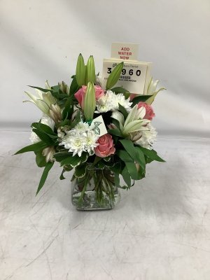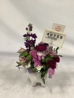 I sent this arrangement to my cousin who lives in Dallas. She raved about it saying how cute it was and the flowers be looking fresh. Also, I sent a question to McShan through their website prior to ordering and their response was prompt and complete. Highly recommend…