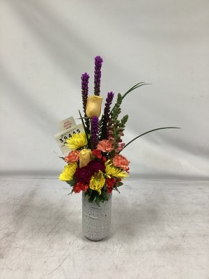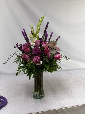 The arrangement is beautiful...as usual :) I appreciate receiving the photo also. I know how she will have a BIG smile!! McShan ALWAYS makes the most beautiful arrangements. That s why they are the only florist I use. The service is always great too. Everyone is so nice and professional. Thank you very much!!!