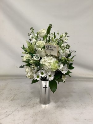 The arrangement is nice. And you can't beat their delivery service. McShan has great communication and are very knowledgeable. Everytime I order they make everything easy. They supply you with a photo of your purchase that is to be delivered.