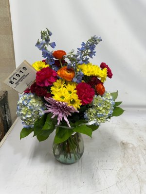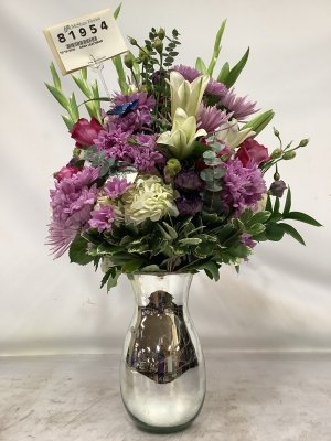 Beautiful flower arrangement! Very fresh and love the devils like the butterfly and the hydrangea, mums, gladiolus, roses and peonies! The delivery man, Mike , was very nice too! Would highly recommend!