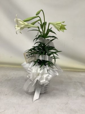 Thank you for the wonderful service. Appreciate the photo! The Easter lily is lovely and a perfect expression our love to the recipients! God bless you! HE IS RISEN!!