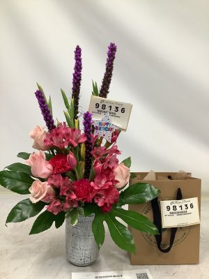 Beautifully done and timely delivered on short notice. I will definitely order from McShan again. The photo of the arrangement was ideal because I could show the order to my husband.