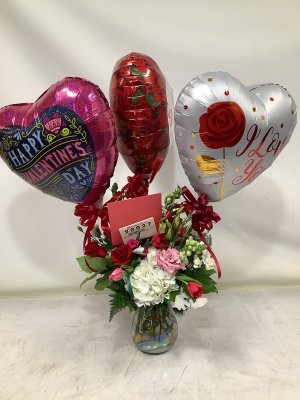 The Valentines bouquet included a lovely assortment of flowers. It was beautiful and is still fresh today!