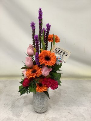 This arrangement was lovely. The flowers were very fresh and have stayed wonderfully. Thank you for taking such care with your arrangements. I will be ordering soon! Vicki