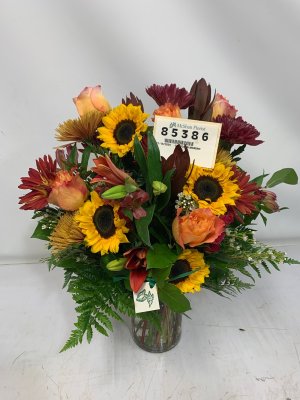 Beautiful fall arrangement. Colors were absolutely gorgeous.