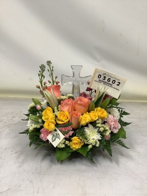 Very happy with how this turned out!! I love the location of the lillies! They are going to be beautiful when they open up. The glass cross is a perfect addition.