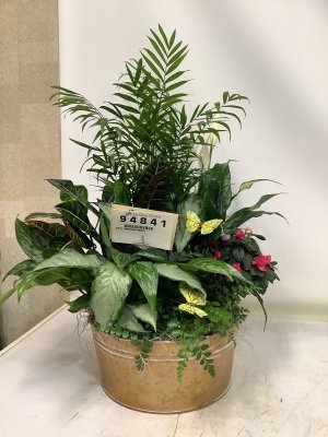 The greenery of this plant looks healthy. However no blooms is a disappointment. I placed two orders for this family. The cheaper of the two orders (#95097) is much more in line with my expectations. Over $100.00 for this arrangement is highway robbery