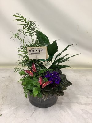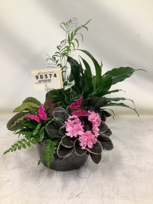 Fresh healthy plants. Gorgeous variegated violet in full bloom. Such a pretty dish garden!