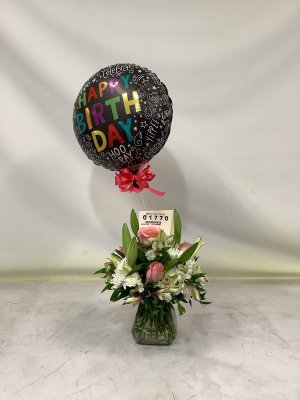 I would have never chosen that balloon to go with that arrangement. My mom is all about pink. I was not given a balloon choice, but assumed it would coordinate with the pink flowers.