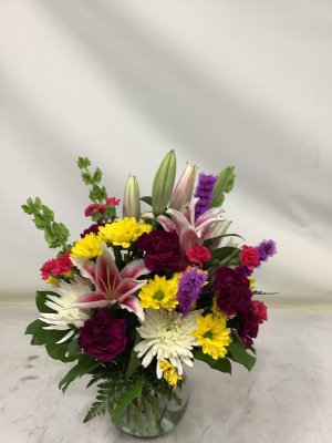 Beautiful, sweet little arrangement to let this lady know we love her and miss seeing her.