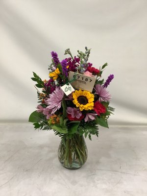 Stems are not long enough to get water. Arrangement over stuffed into top of vase. Flowers decay rapidly despite frequent water filling. You have to reassemble flowers and remove a lot of filler. Too much maintenance. Yes they look good at first but you are lucky to get 3 days worth until they need to be thrown out. Not good value for expense. Have received flowers from McShan many times, all with the same issues.